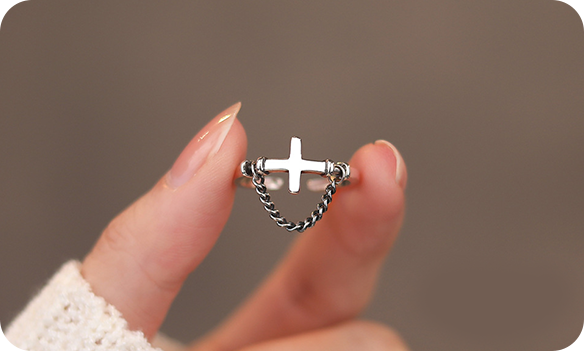 The design of this cross ring is unique. Its minimalist cross shape is cool